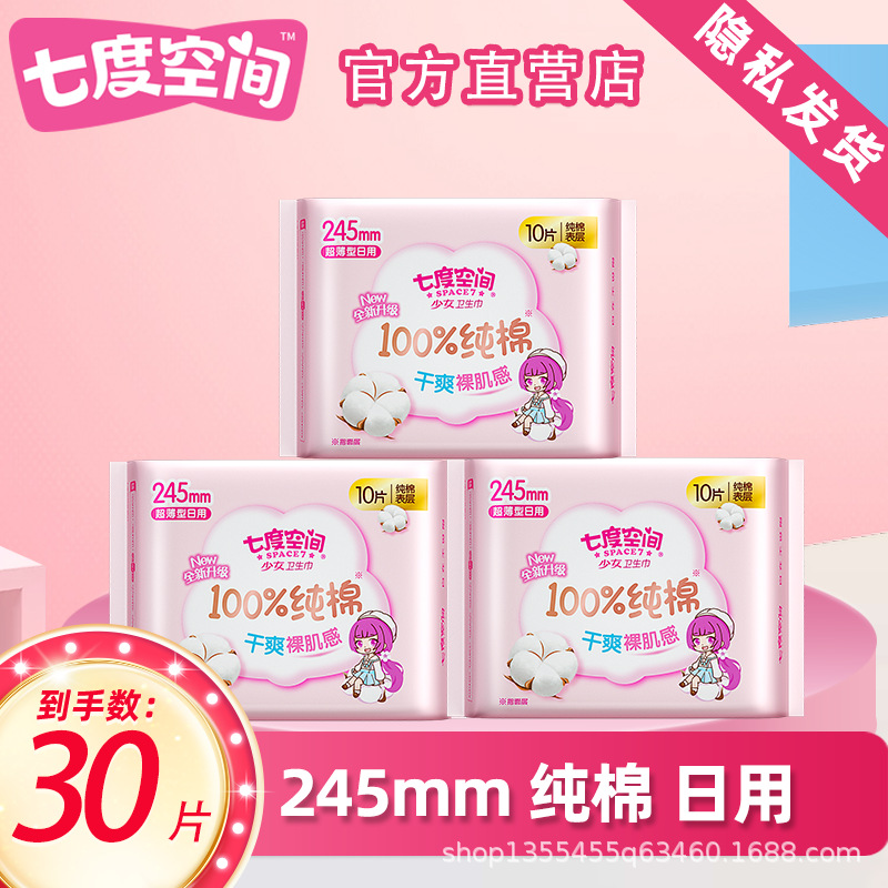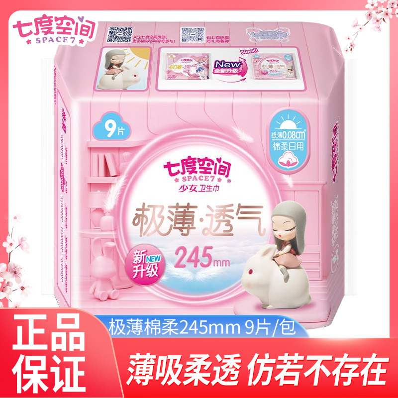 QSD8109七度少女极薄透气棉柔日用245mm9片超薄贴身整箱批发正品