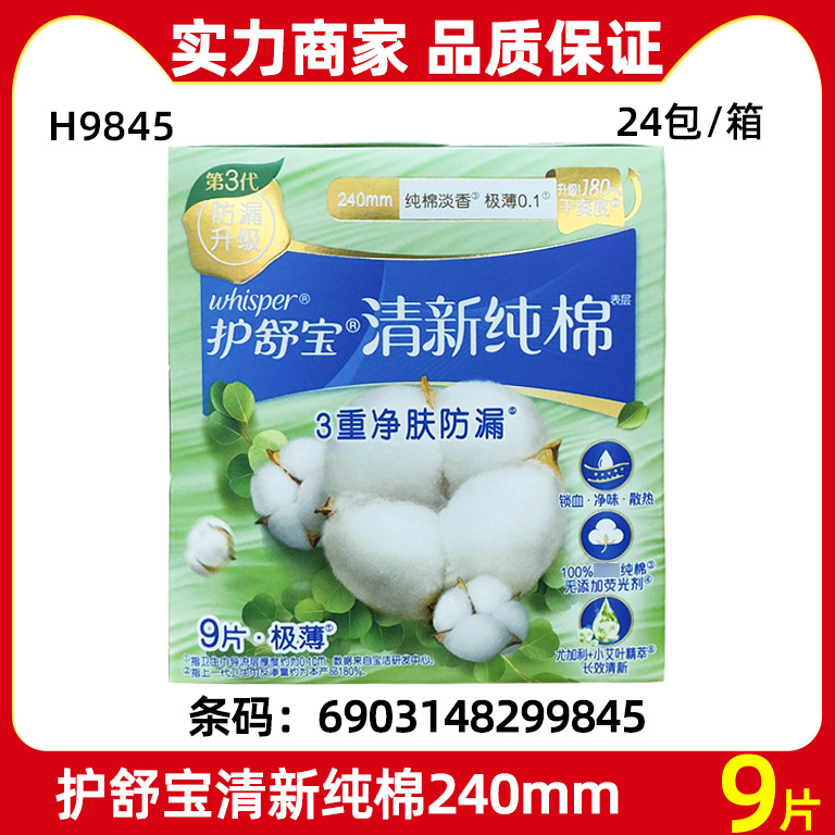 舒宝生理用ナプキン卸売り清新純綿240mm 10枚通気シルク生理用ナプキン9845