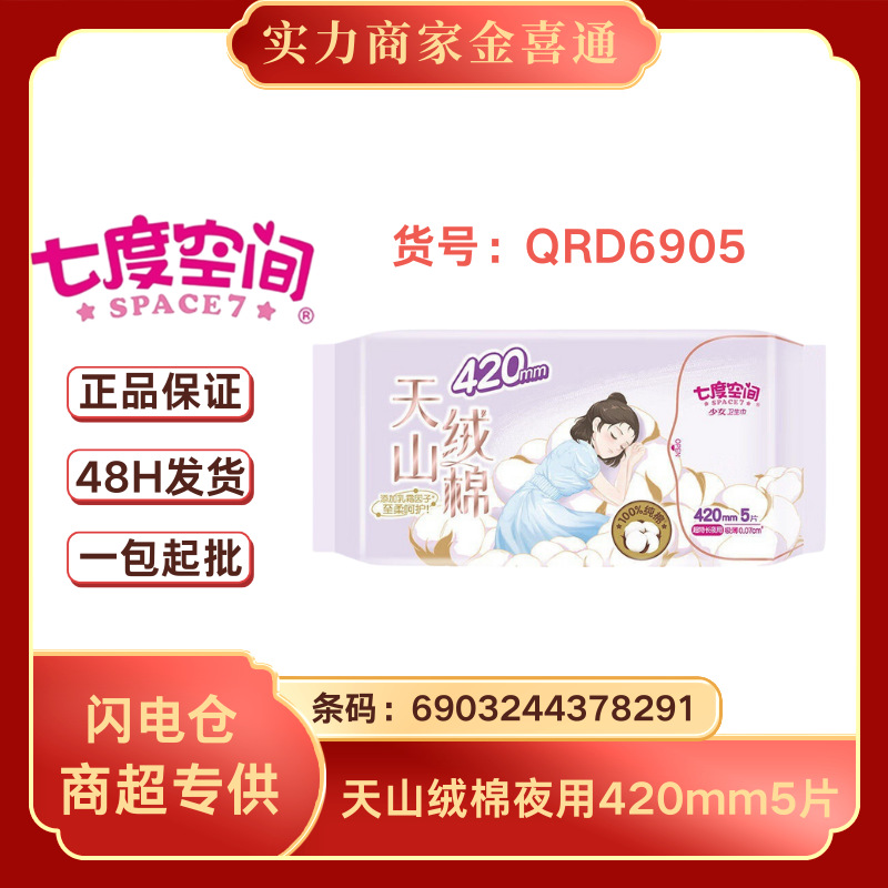 セブンディグリーズ スペース生理用ナプキン 天山ベルベットコットン 夜用生理用ナプキン 420mm 5枚入 【QRD6905】全箱卸売