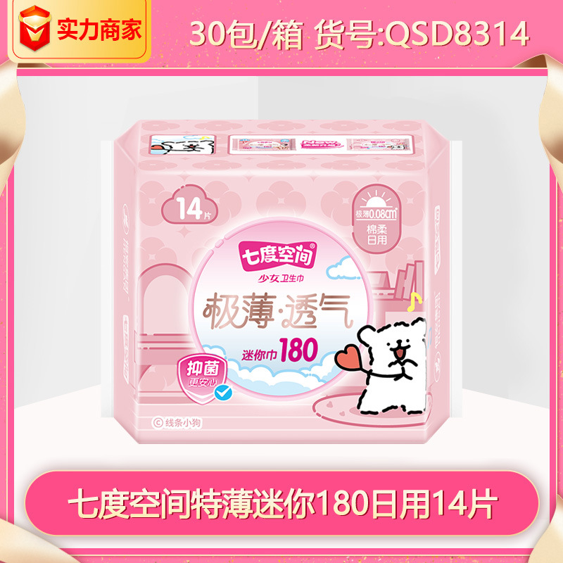 七度空間生理用ナプキン極薄ミニタオル180mm綿柔日用14枚全箱卸売り正規品qsd8314