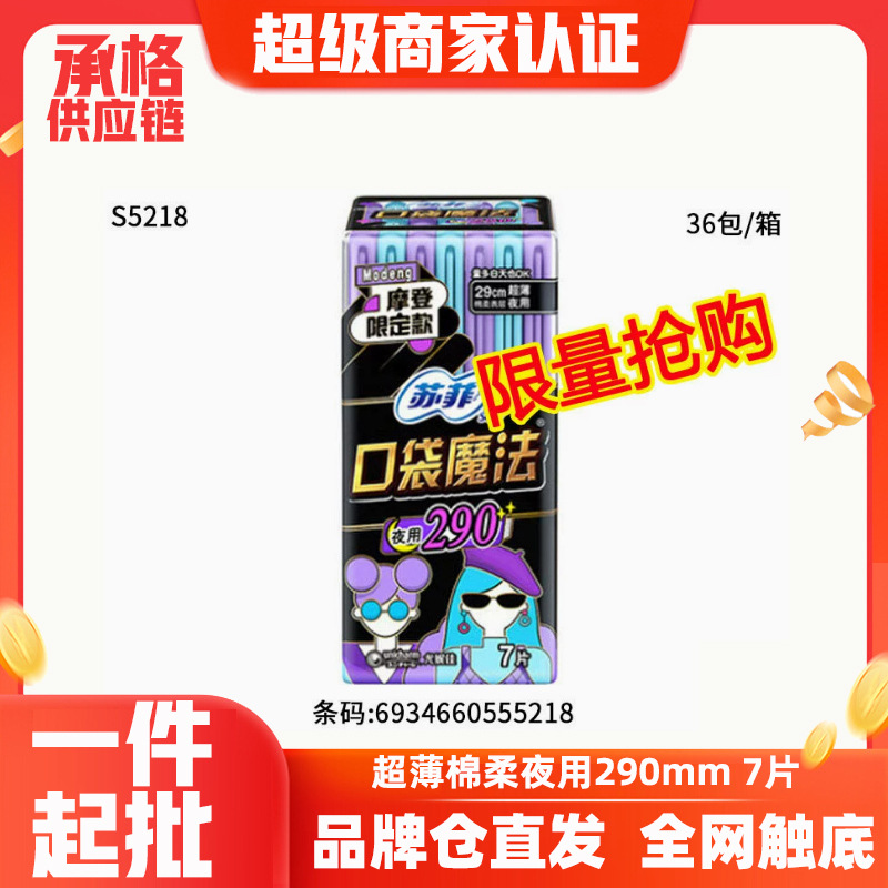 ソフィー ディストリビューター 卸売 生理用ナプキン ポケット マジック ナイト ユース ゼロフレーバー 290mm コットン ソフト 7 枚 フルボックス バッチ 5218