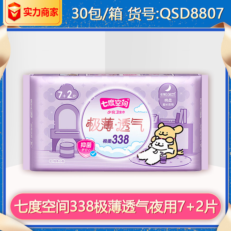 七度空間生理用ナプキンは極薄夜用338mm純綿のおばさんタオル9枚のフルケースで正規品qsd8807を卸売りします。