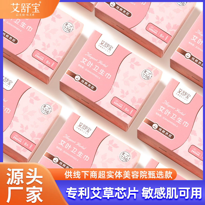 ヨモギ生理用ナプキン、昼夜用、通気性の良いアシュバオ生理用ナプキン、超薄型パッド、工場純綿生理用ナプキン、全箱一括