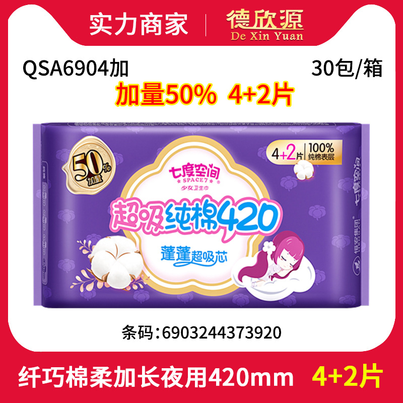 七度空間生理用ナプキン少女純綿420mm夜用叔母タオル10枚全箱卸売り代理qsa6910