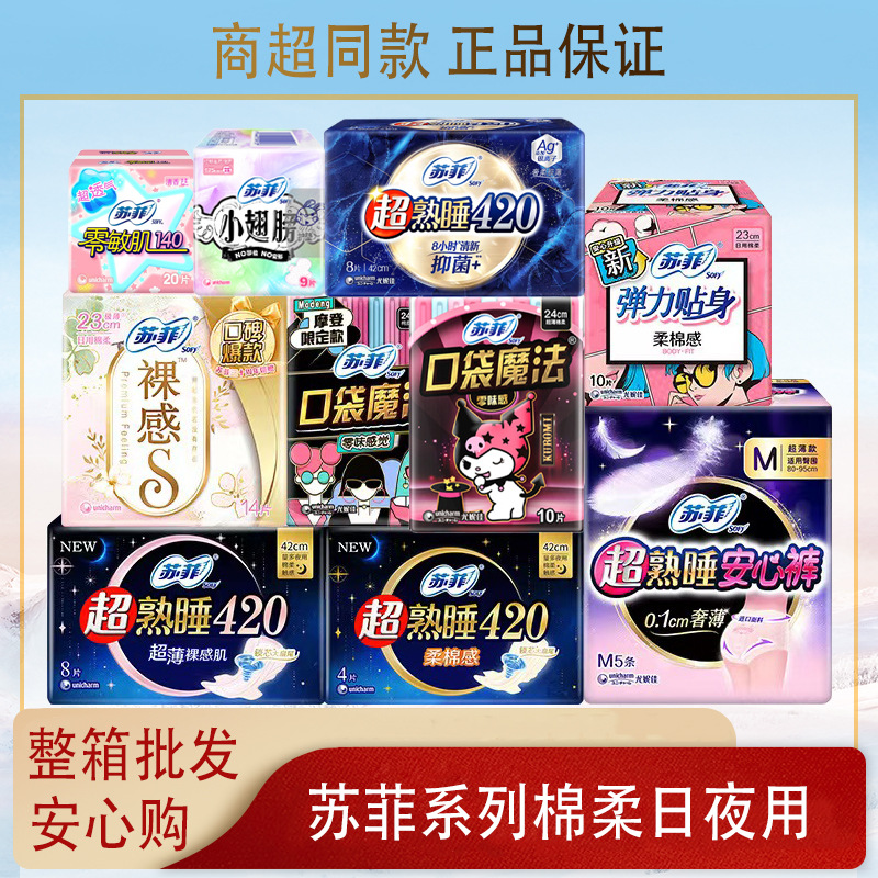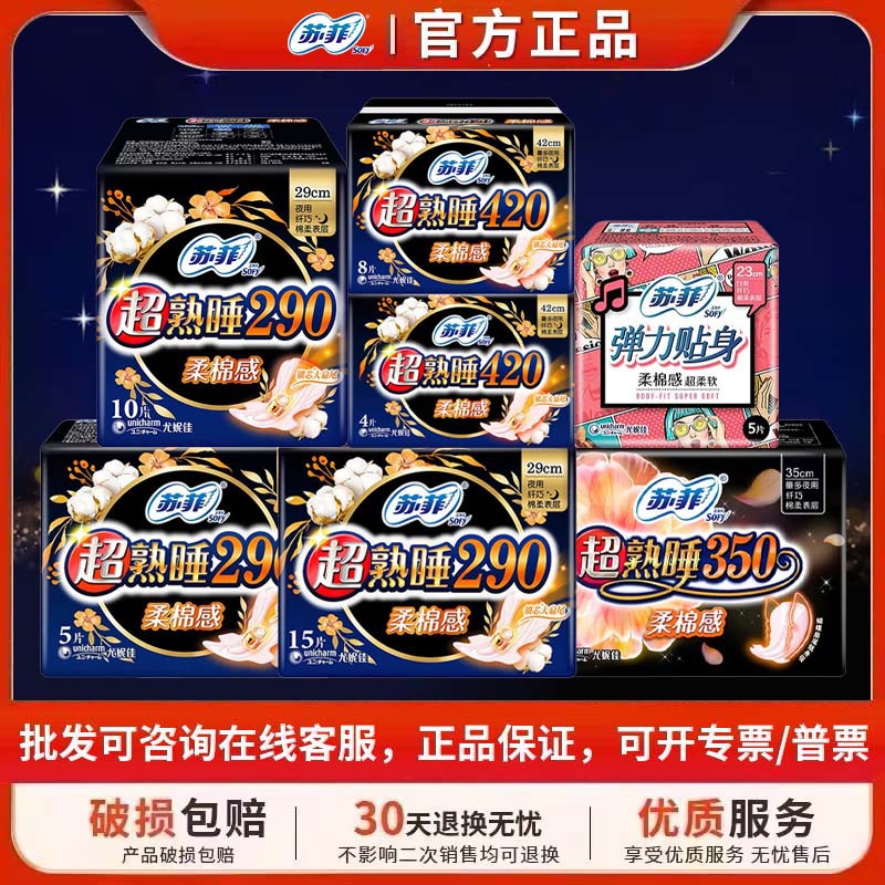 Su 生理用ナプキン超薄綿ソフト超熟睡弾性超薄型昼夜兼用コンビネーションシリーズ本物のフルボックス卸売