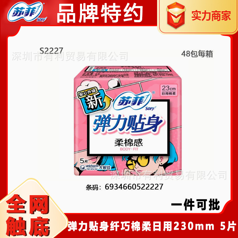 ソフィー生理用ナプキンブランド綿ソフトスリム弾性ぴったりフィット日常生理用ナプキン 5 個パック 230 フルボックス卸売配送
