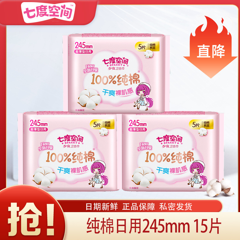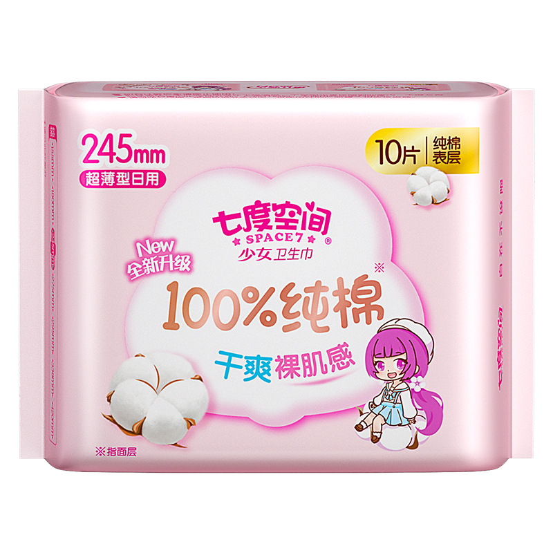 Seventh Space 生理用ナプキン 女の子用 極薄コットン ソフト 日常使用 245mm/5枚入 肌に優しいおばさんナプキン QSC6105