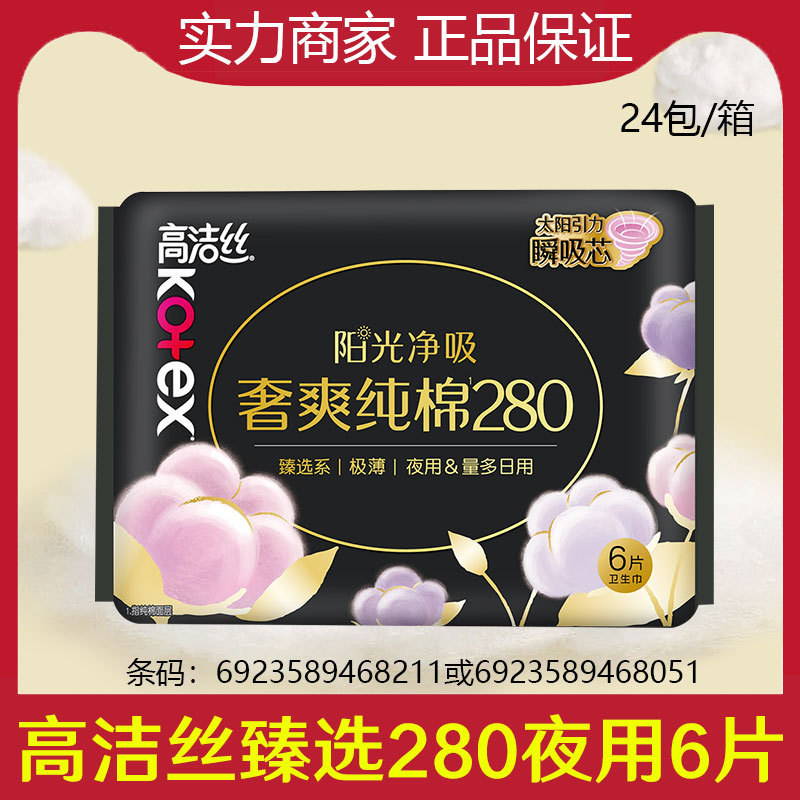 高洁糸生理用ナプキンは贅沢で爽やかな純綿280mm 6枚の夜用超薄叔母タオル卸売り6805熙新