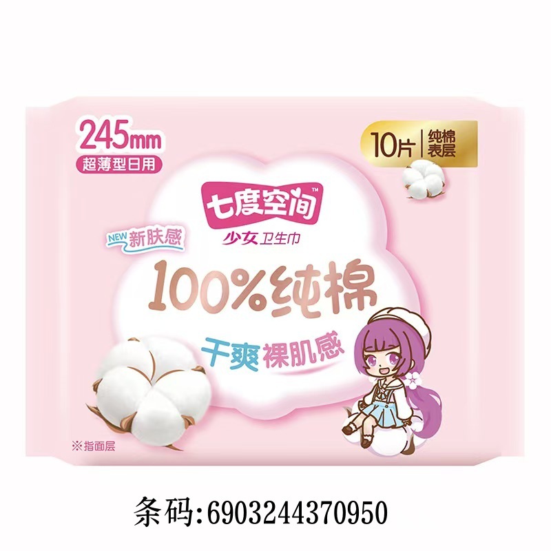 七度少女生理用ナプキン優雅シリーズ275夜用338超薄245日用少女純綿全箱卸売り
