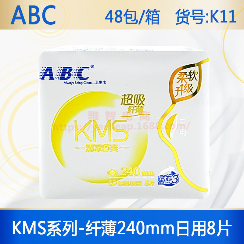 ABC夜用浅薄生理用ナプキン1パック8枚全箱48パック卸売りKMSケア女性生理日健康叔母タオル