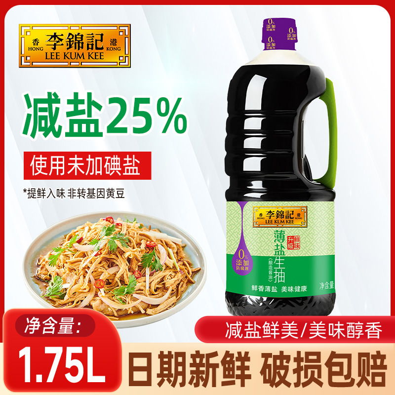 李錦記 薄塩醤油 1.75L ボトル入り 天然薄塩 健康醤油 調味料 冷製調味料 調味料