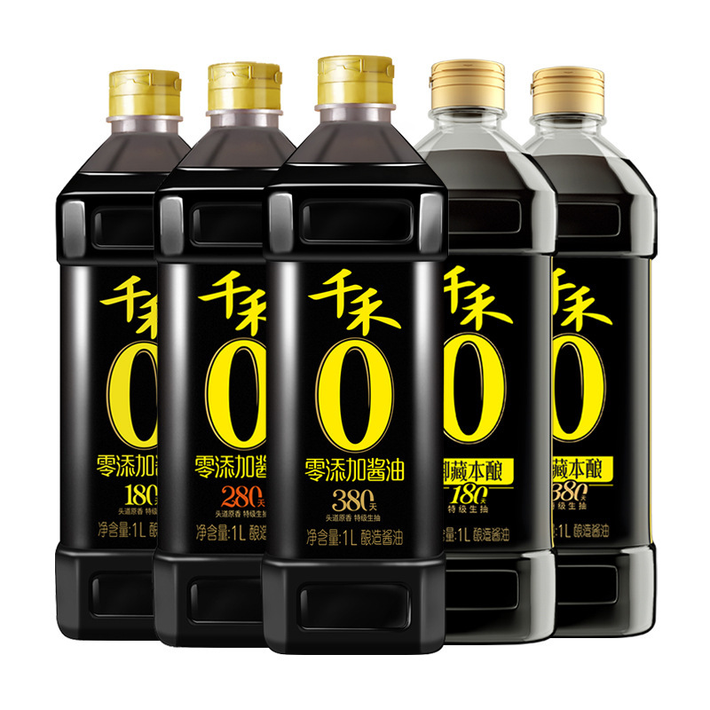 千禾ゼロ添加醤油頭道特級生抽出180/280/380日1l純食糧醸造家庭用ヨウ素なし