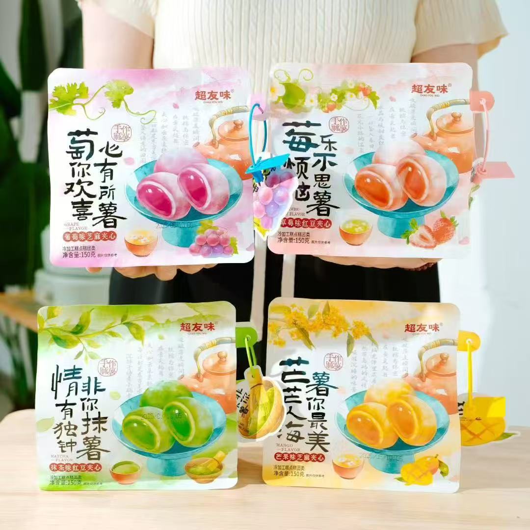 スーパーフレンドリー手作りもちもち 150 グラム食品グレープストロベリーマンゴー抹茶味スナック食品箱サイズ 24 パックバッチ