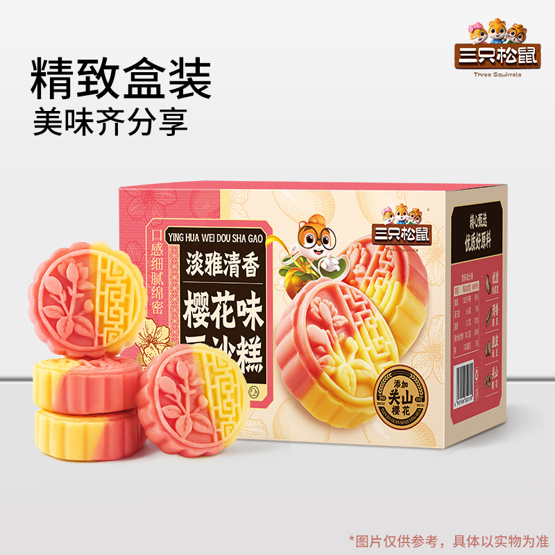 Three Squirrels_さくら風味のあんこケーキ 500g 緑豆ケーキ カジュアル アフタヌーンティー フルボックス スナック