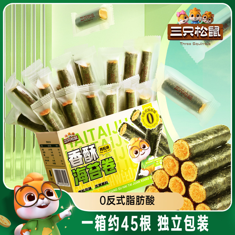 【三リスとミートフロスと海苔巻き】海苔と海鮮の卵巻きをサンドした毎日のカジュアルで健康的なおやつ