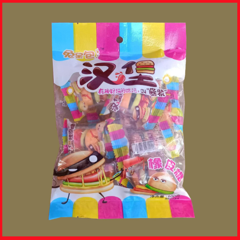 ウサギはハンバーガーグミ100g/バッグ (フル50パック/賞味期限18ヶ月) の子供キャンディーの間食