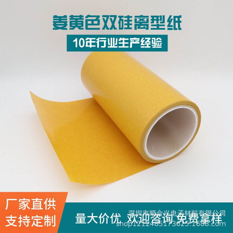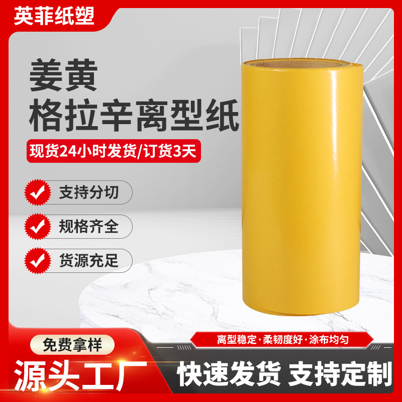 メーカーは離型紙を供給して90グラムの双シリコン単シリコン姜黄色離型紙を生産しています。