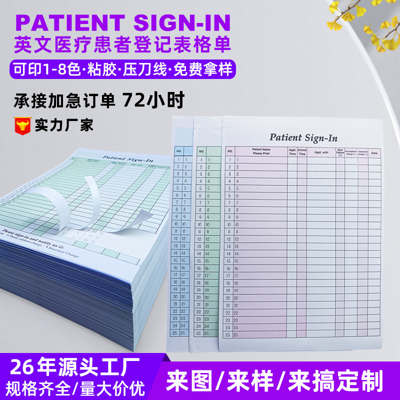 海外専用医療患者登録用紙(剥がせる粘着式+無炭素複写式)