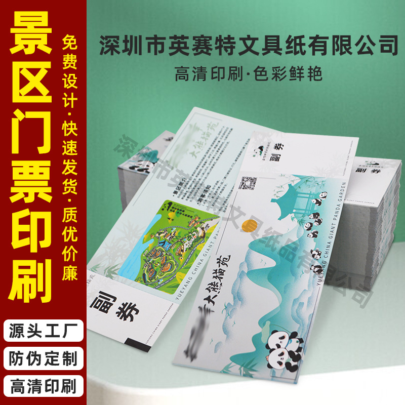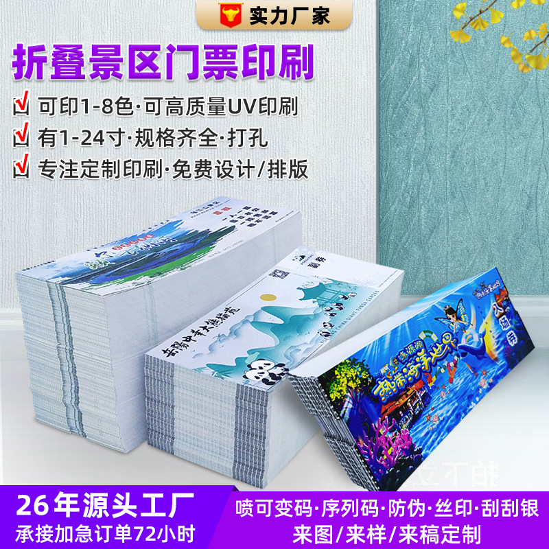 チケットのカスタマイズ、さまざまな仕様のカラフルな景勝チケット、番号付き折りたたみチケット、偽造防止入場クーポンチケット