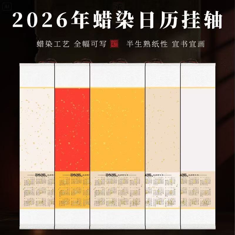 2026年馬年宣紙掛け軸カレンダー、ワックス染め紙カレンダー、掛け軸、空白単色春聯、書道、カラー印刷、卸売