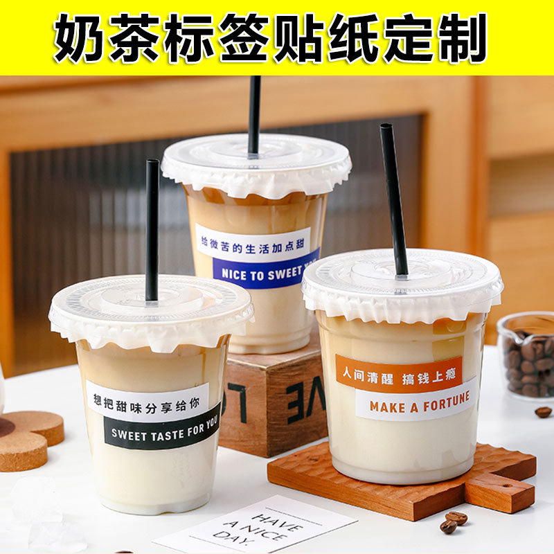 カスタマイズされたミルクティーカップステッカーベーキングラベルコーヒードリンクボトルフルーツティー透明漫画かわいい装飾ステッカー