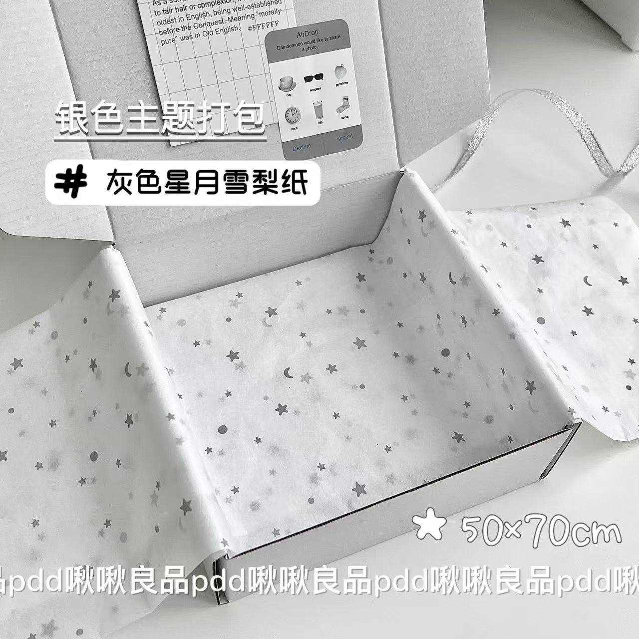 Ins風シンプルな銀色の灰色の星の月の雪梨紙韓風のカードのテーマはプレゼントの包装紙を包装します。