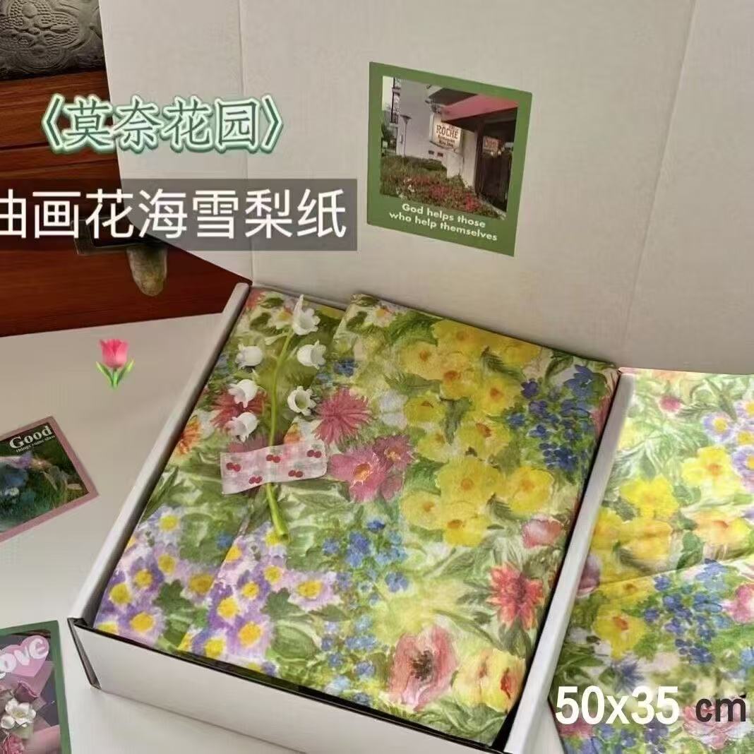 Ins風莫奈花園花海雪梨紙油絵春レトロプレゼント包装紙砕花底飾り紙