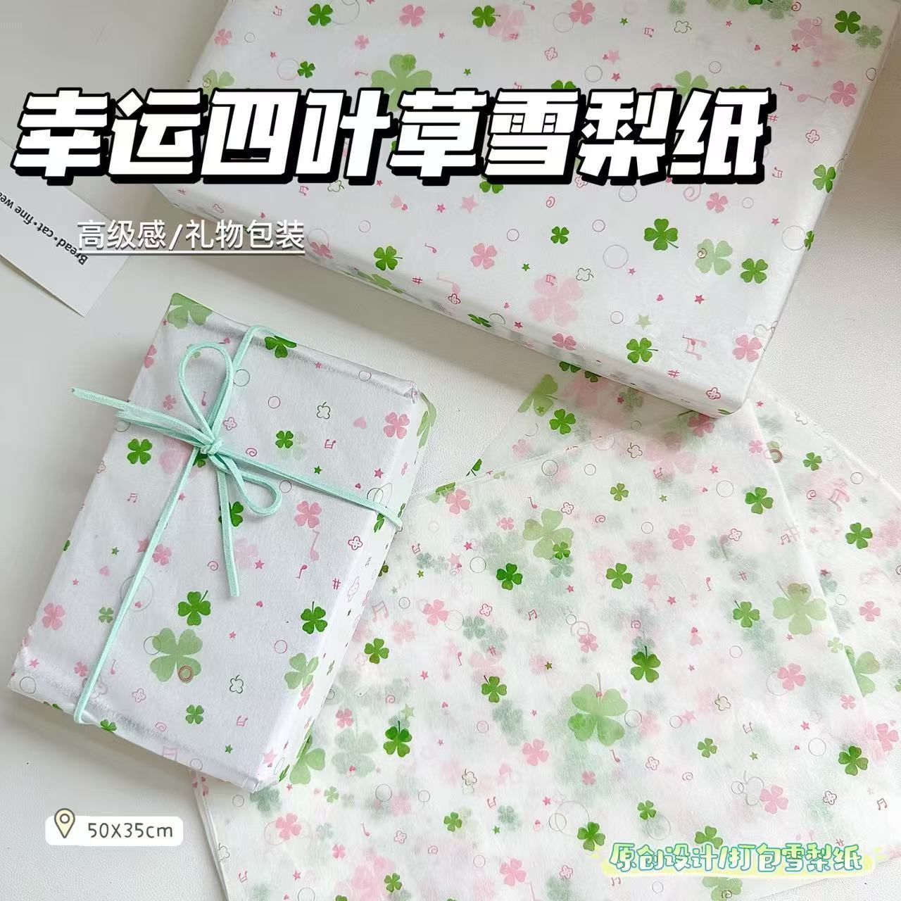 高颜値ins風幸運四葉草雪梨紙出カード梱包材料文創プレゼント包装紙平価