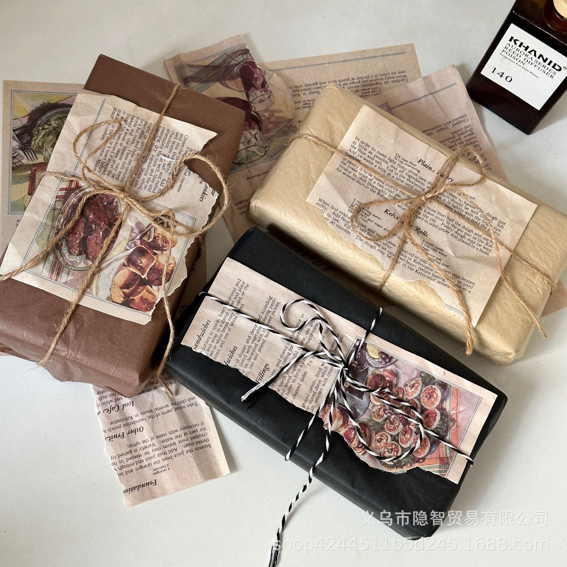 レトロ系シドニー紙半透明プレゼント包装紙大張insアメリカ枚素材紙麻縄セット