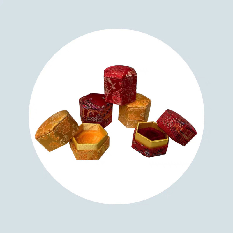 錦織六角錦布薬小六角錦箱古薬丸薬安公清心小錦織内箱赤黄緑