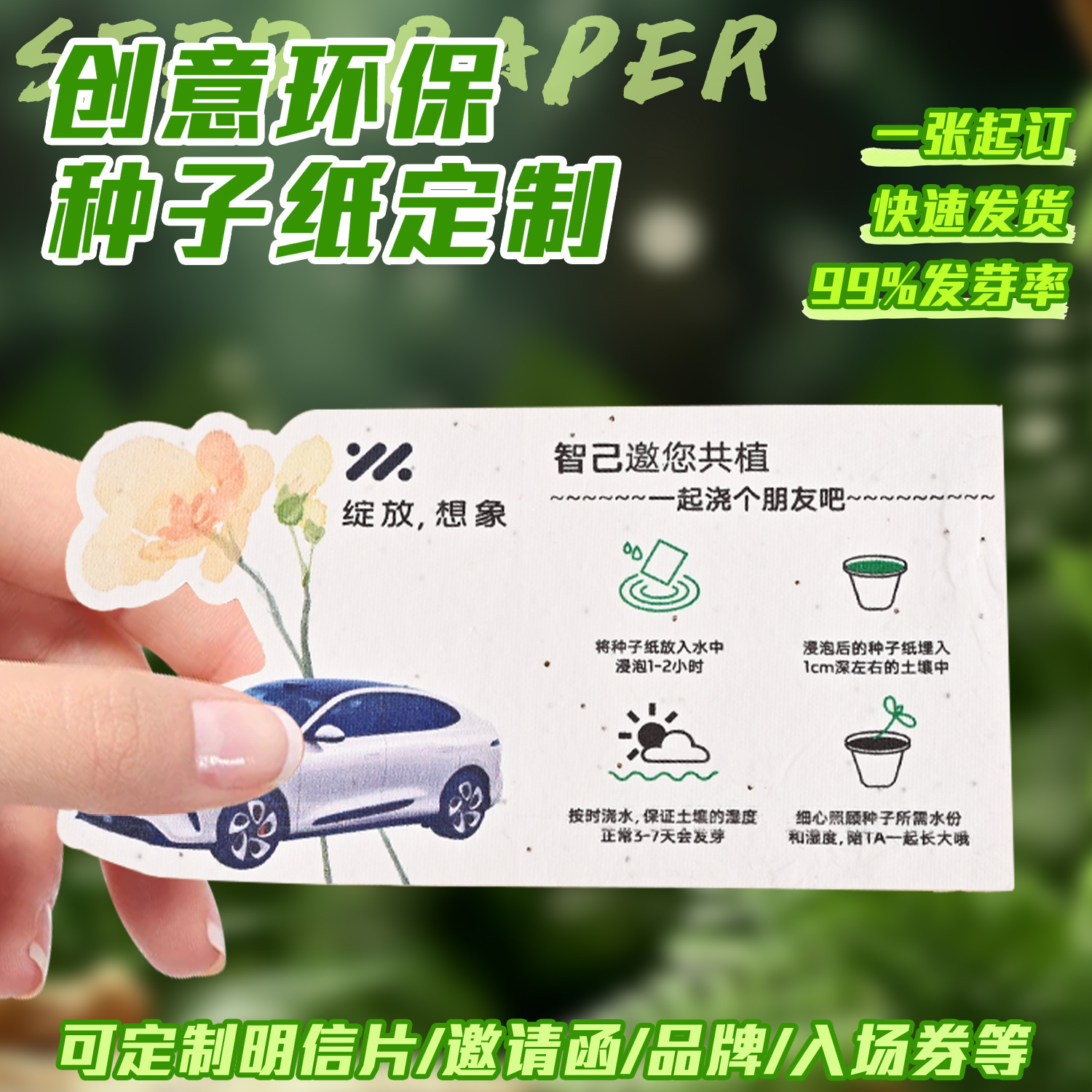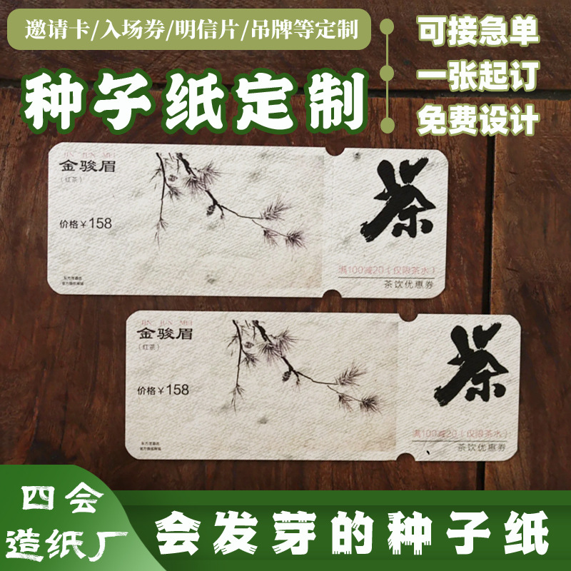 环保种子纸 可设计活动入场卷明信片门票书签凹印可种植种子纸