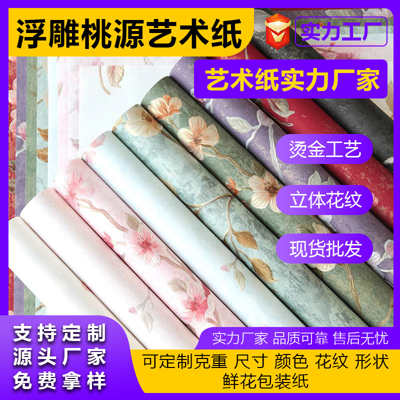 苔米高品質桃園シリーズ印刷紙 花包装紙 新型箔押し浮彫りアート紙 花包装紙