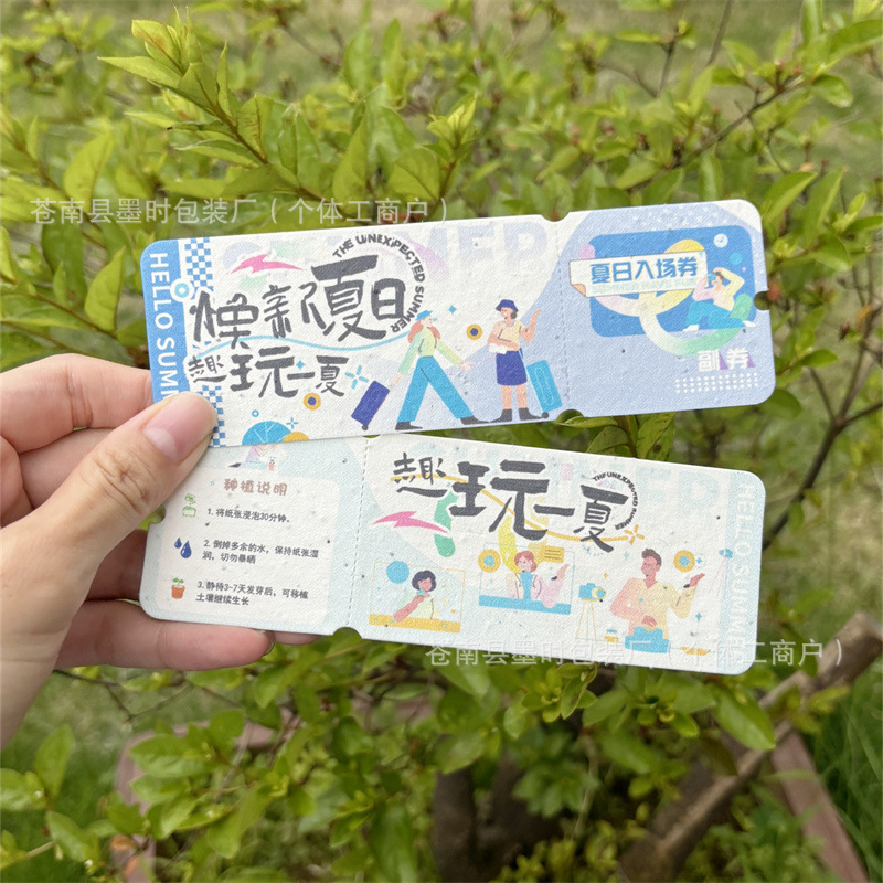 夏の入場券種子紙チケット種子紙入場券発芽紙印刷入場券にロゴを追加します。