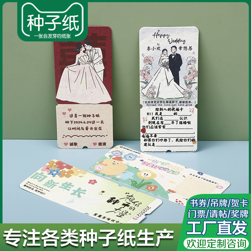 種子紙生産チケットグリーティングカード結婚式招待状タグ種子紙祝日イベント宣伝カード製造