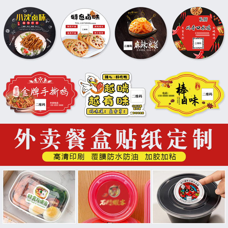 カスタマイズされたテイクアウト弁当箱ステッカー自己粘着ラベルシール包装箱カラー印刷 QR コード卸売