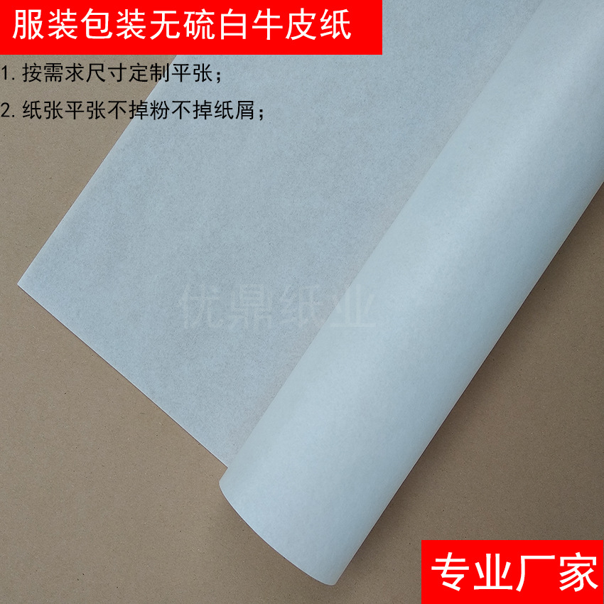 30gの衣類包装、強度の高い硫黄不使用の白いクラフト紙、衣類用のスリットフラットシート、防湿白いクラフト紙