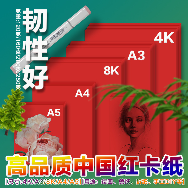高級赤いボール紙 A4 厚み 250 グラム 8K 中国赤愛国的な赤い学生特別な DIY 切り絵 4K