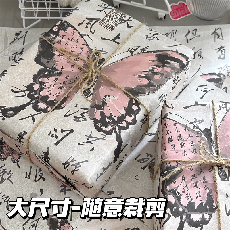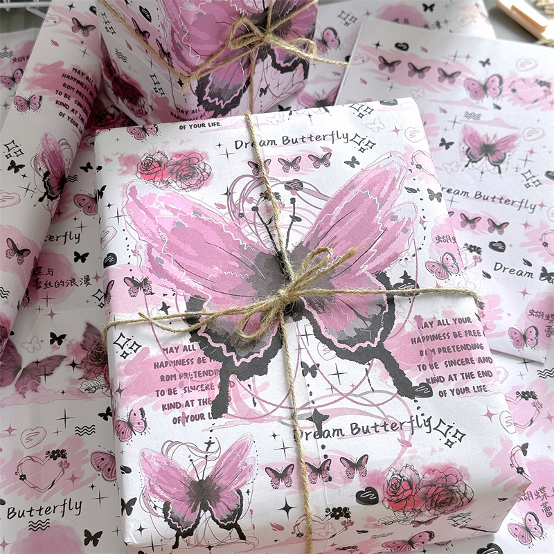 中国のピンクの蝶の包装紙ハイエンド大型インスタイル高価値学生ホリデーギフトギフトボックス DIY 素材