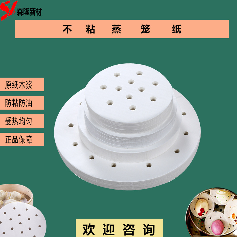 シリコン紙の原産地工場、使い捨て蒸し器用紙、ノンスティック、家庭用食品グレード、穴あき