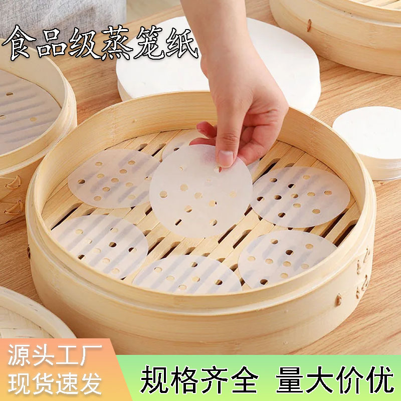 使い捨て大サイズ蒸籠紙マントー非粘着パッド紙耐高温円形穴付きシリコン油紙蒸籠紙大サイズ