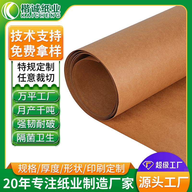 食品級単光縞地色クラフト紙防湿木材パルプ牛皮包装紙ロール地色鶏皮紙40g