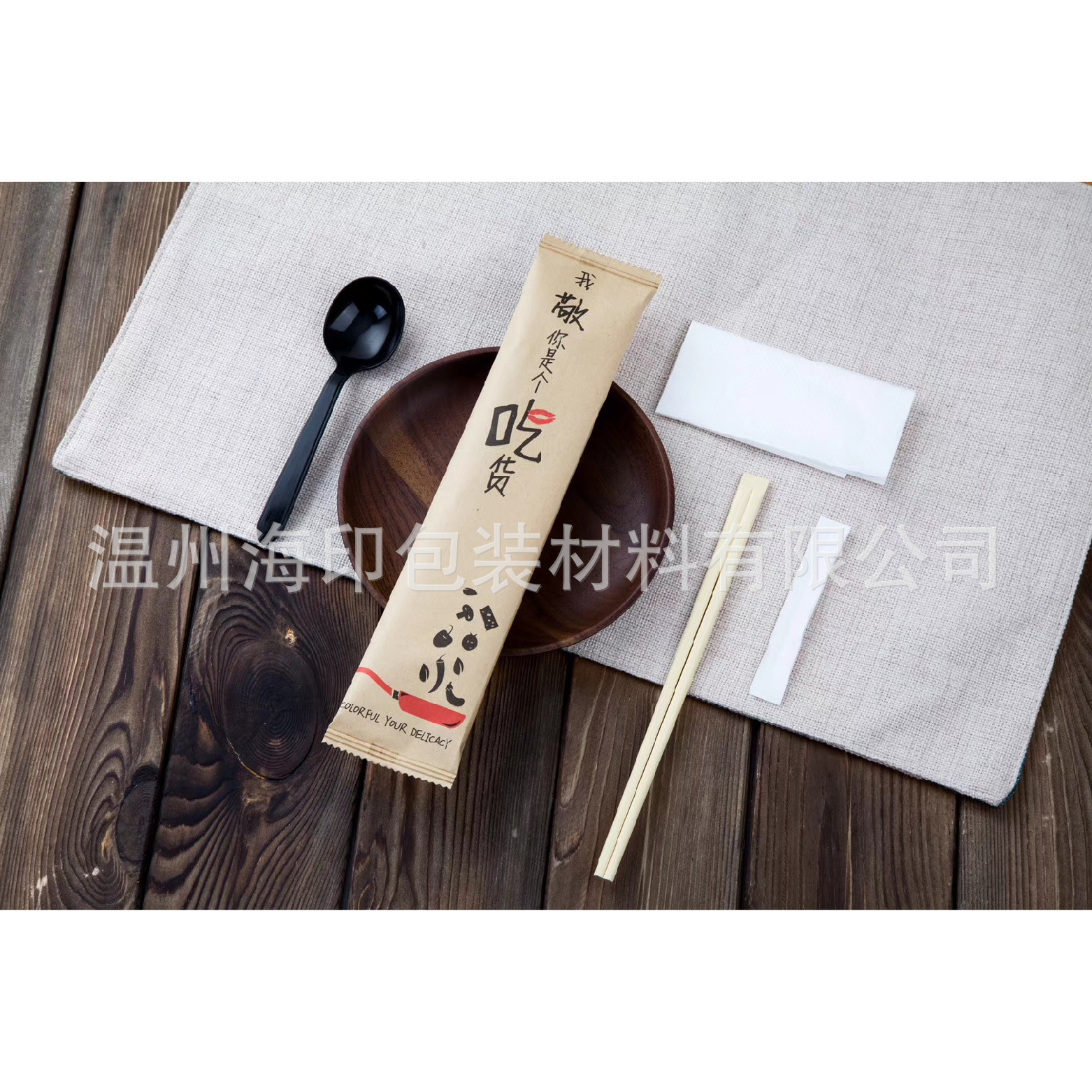 【メーカーカスタマイズ】包装フィルムフィルム包装使い捨て箸楊枝紙食器バッグ四点セットフィルム紙