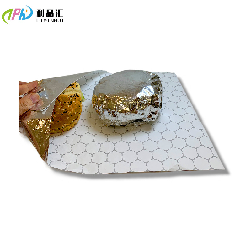 スポットシルバーアルミ箔ハンバーガー紙ハニカム複合アルミ箔加工サンドイッチアルミ箔紙使い捨てテイクアウトバッグ