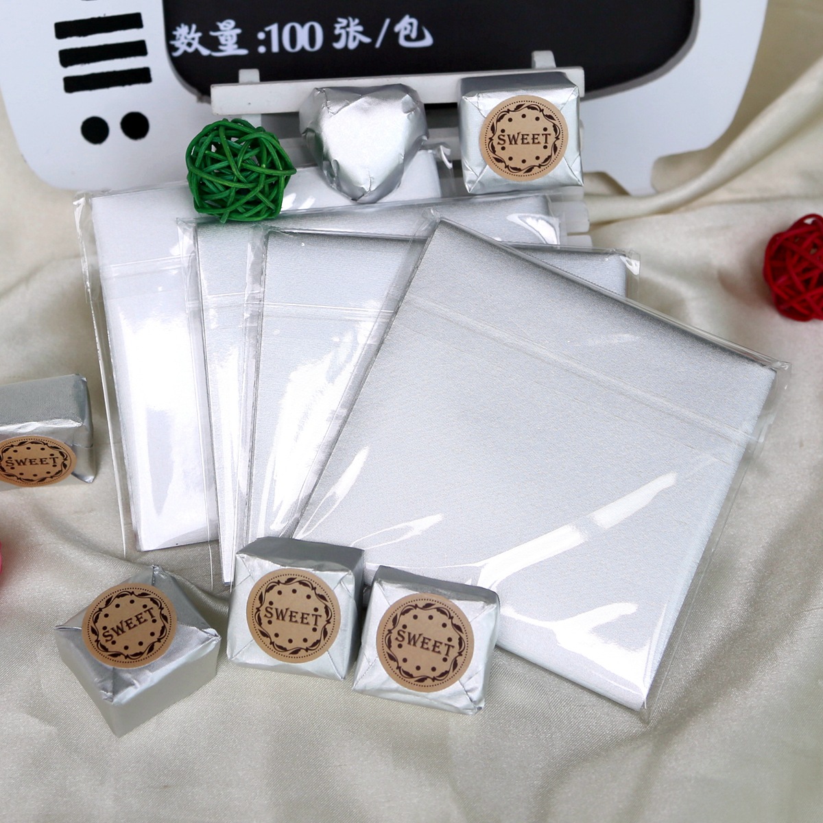シルバーチョコレートアルミ箔紙キャンディー包装錫紙茶葉包装手作り焙煎錫紙100枚8x8