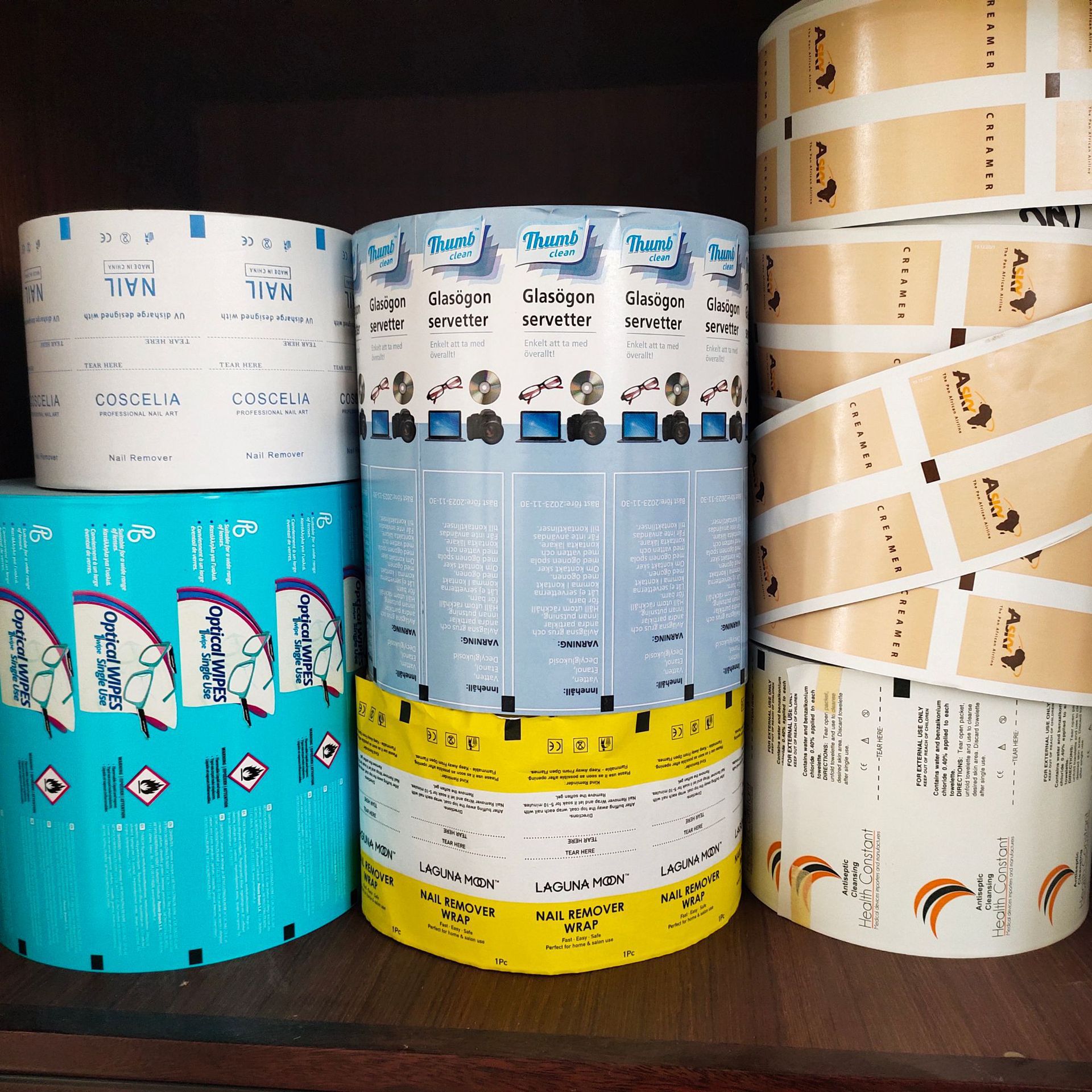 卸売アルコールフレーバー揮発性物質ワイプ包装ロールフィルム紙ヨウ素ワイプ包装紙