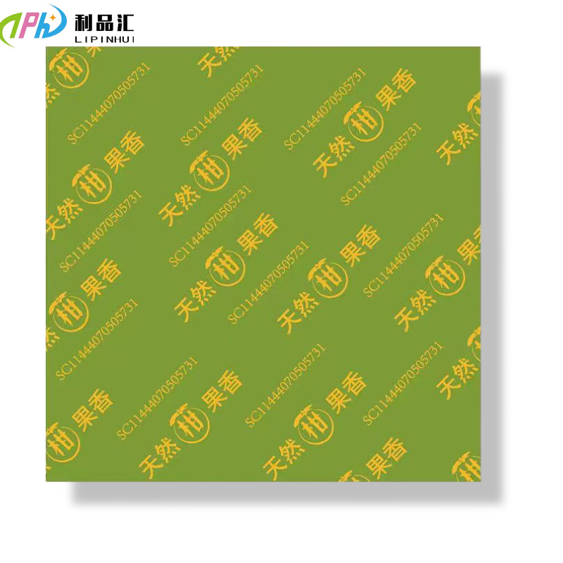 小青柑包装アルミ箔紙茶葉アルミ箔チョコレート錫箔紙カラーエンボス緑ロゴ錫紙を供給する