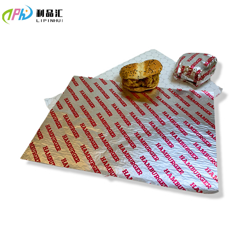 さまざまなサイズのハンバーガー包装紙サンドイッチ紙印刷ロゴアルミ箔複合紙ワックス複合錫箔シール