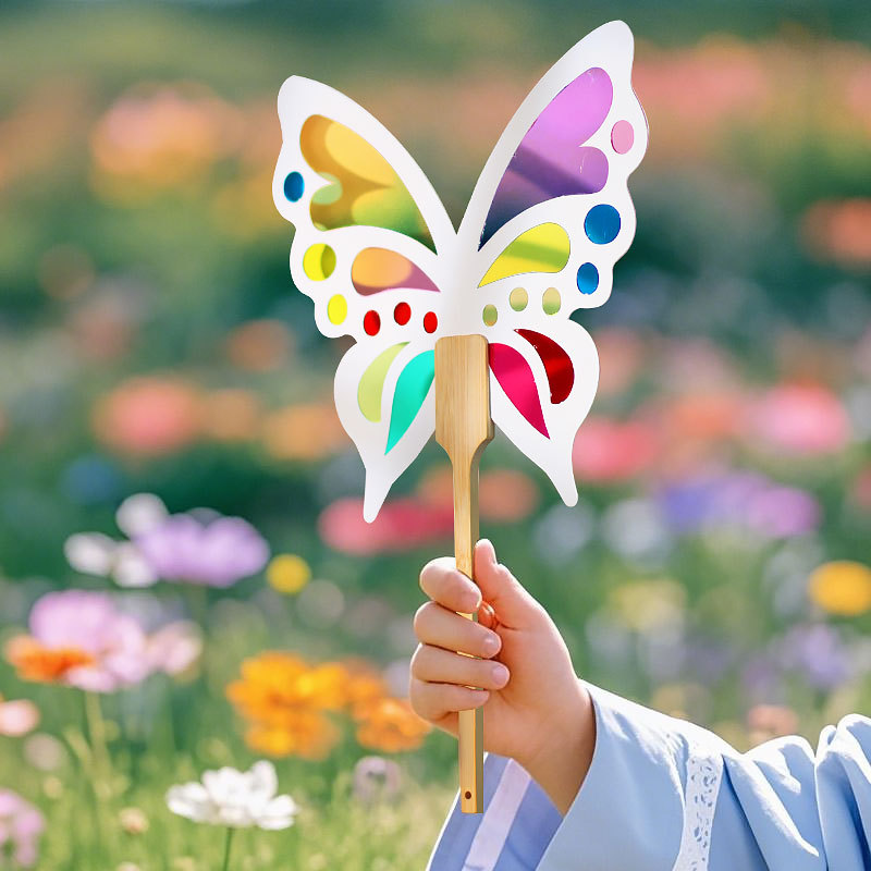 屋外の春と夏の装飾光と影の蝶の扇子手作り DIY カラー透明フィルム素材パッケージ
