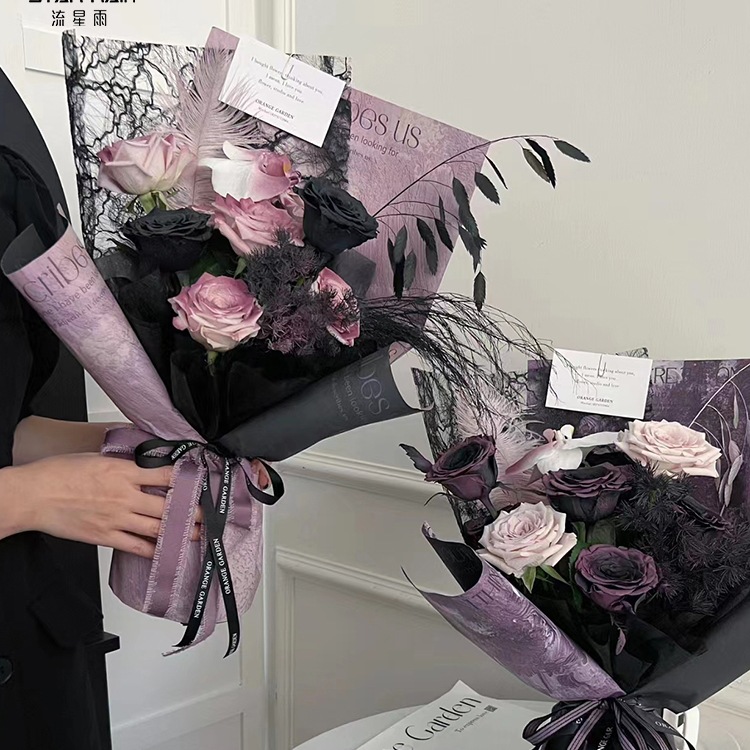 大理石模様の黒梅ソース油絵花包装紙紫花束包装花材花材
