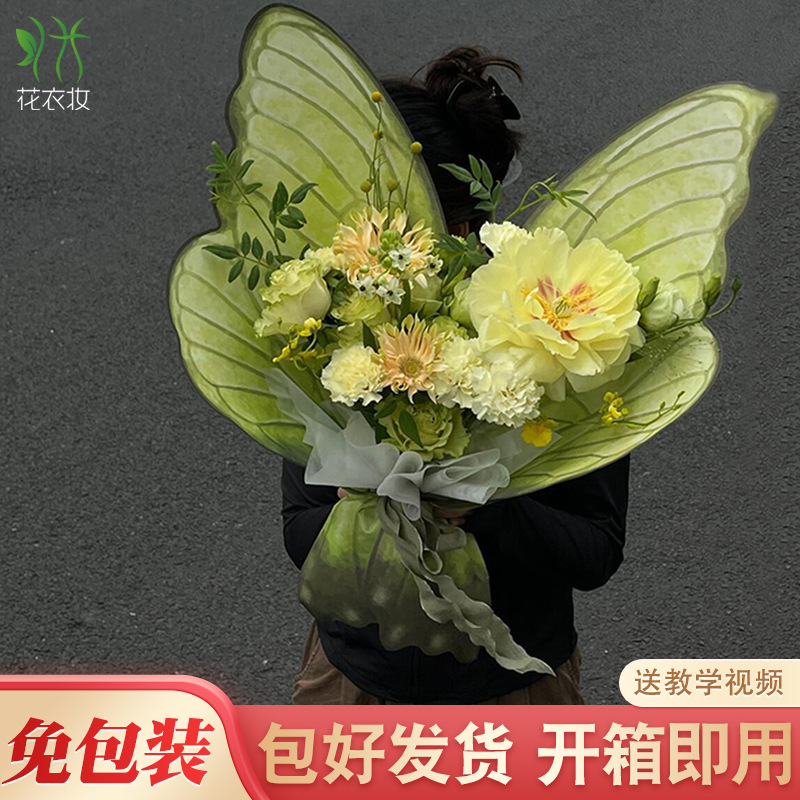 蝶の花束半完成包装紙スナック DIY 手作り材料フルセットの羽無料包装花アレンジメント